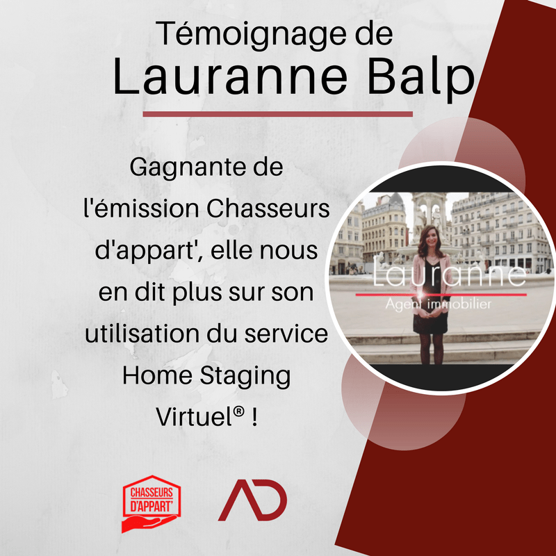 Lauranne Balp, agent immobilier grande gagnante de l’émission Chasseurs d’appart’ en 2016 durant laquelle elle a utilisé le service Home Staging Virtuel® nous livre aujourd’hui son témoignage sur cette expérience unique !